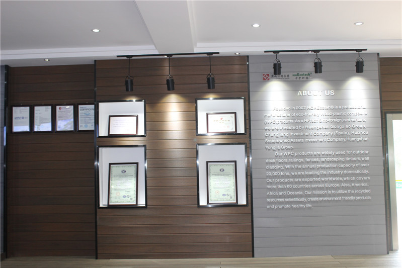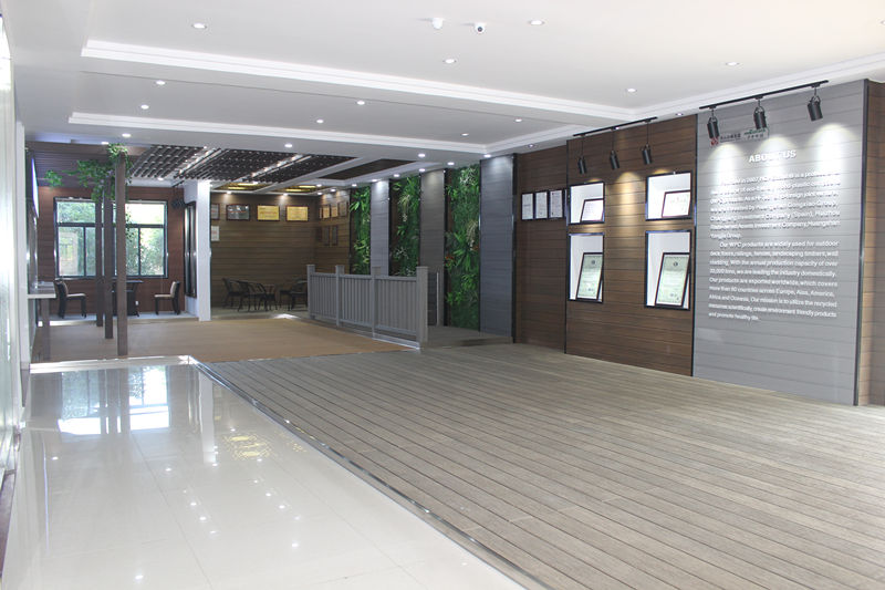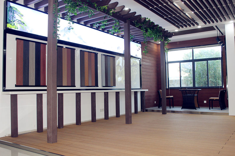 華塑公司樣品展廳歷時1月之久已升級完成。將原來的室內陳列式樣品展廳更改為更具展示性的開放型展廳,展廳涵蓋地板、浴室板、墻板、圍欄、藤架等全線商品,樣品與成品展示相結合,滿足觀賞性的同時也提高了客戶的體驗度。
