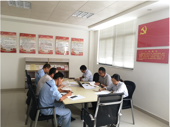 公司副總經(jīng)理姚俊在黨員活動室展開主題教育的集中學習